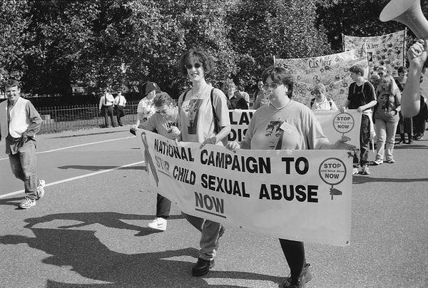 among the demonstrations was one against child abuse. or rather against child abusers, and demanding tougher action. perhaps understandable in this case in that a number of those marching had been victims of abuse in their own childhood.