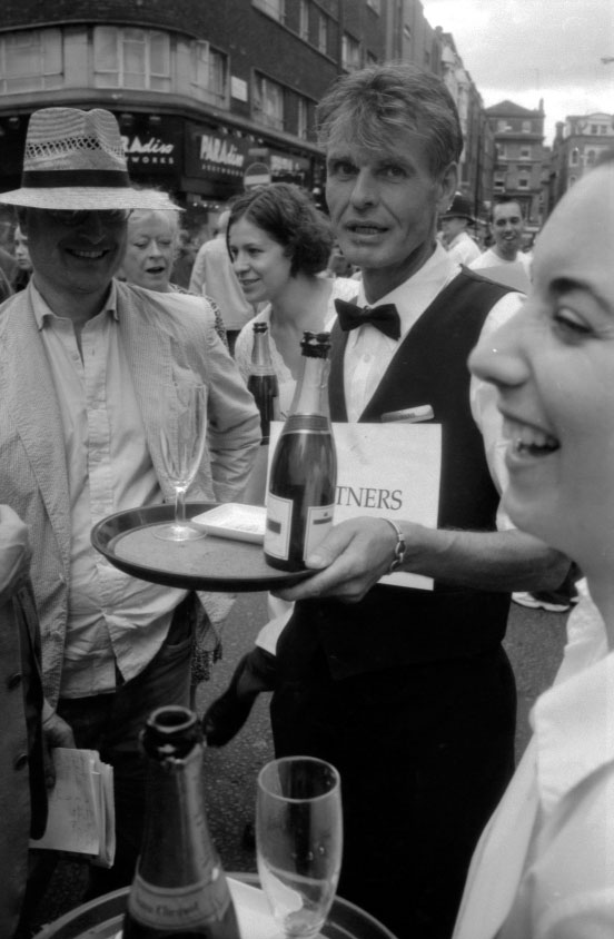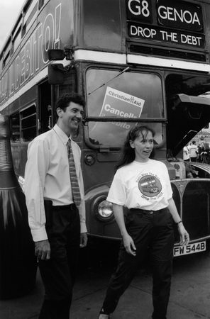 The bus about to leave Trafalgar Square for Genoa, 13 July 2001
