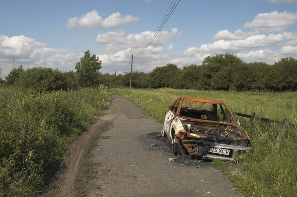 me on a footpath in west drayton, through a breaker's yard, where the path