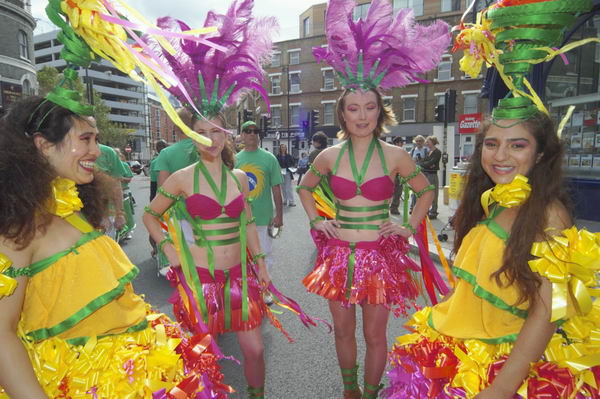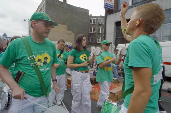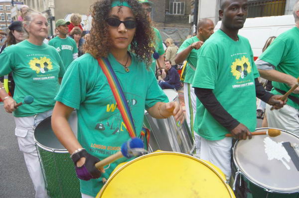 London School of Samba prepare to liven up the day in Shoreditch. |