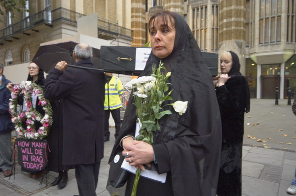 ![]() The Code Pink cortege stops opposite the Cenotaph |