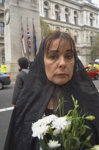 ![]() Police eventually allowed a small group to cross Whitehall to lay the wreath and flowers on the Cenotaph |