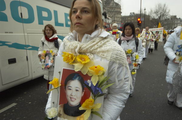 earlier i was photographing a rather more serious event, a march by falun gong supporters to the chinese embassy. to me, falun gong seems a harmless form of meditation exercises, available to anyone without charge and following the admirable principles of truthfulness, compassion and tolerance, but the chinese government seem to regard it as the most dangerous form of terrorism.