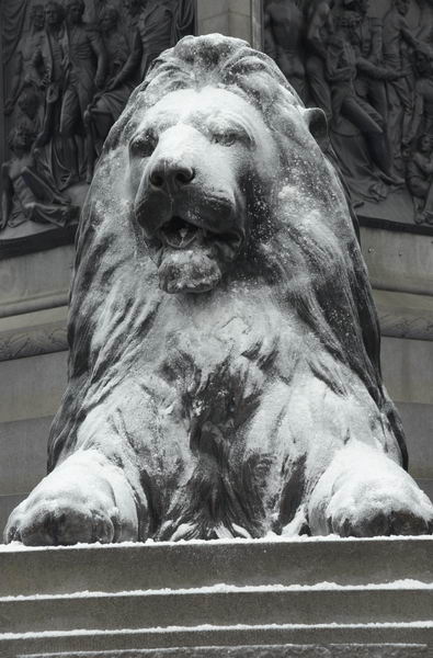 A chilly looking lion in Trafalgar Square, though the Russian winter here