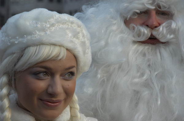 The Snow Maiden and Father Frost in Trafalgar Square, London, 15 Jan, 2005