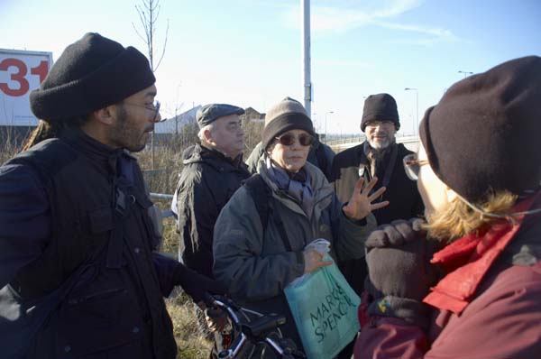 ![]() Annie talks to the No London 2012 walkers at Eastway/Waterden Rd junction. ![]() No London 2012 walkers at Arena Field, Hackney WIck. Note the raised ground level after landfill. |