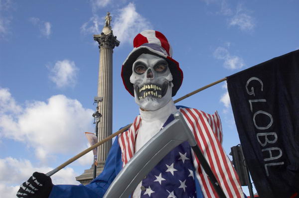 reaper' with cork decorated hat), before making its way past trafalgar square