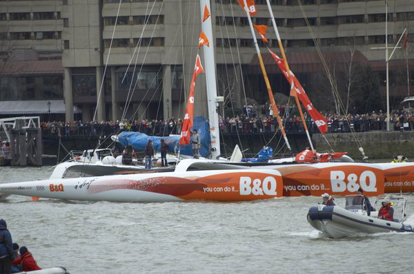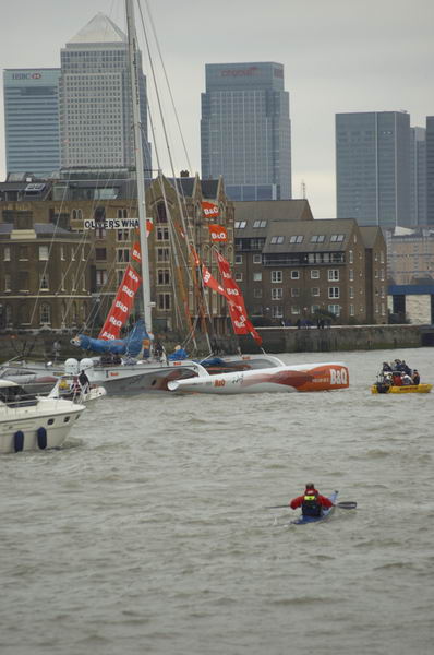 ![]() A lone canoeist joins the flotilla as it heads back to Greenwich |