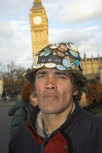 ![]() Brian Haw who has been protesting in Parliament Square since 1st June 2001 |