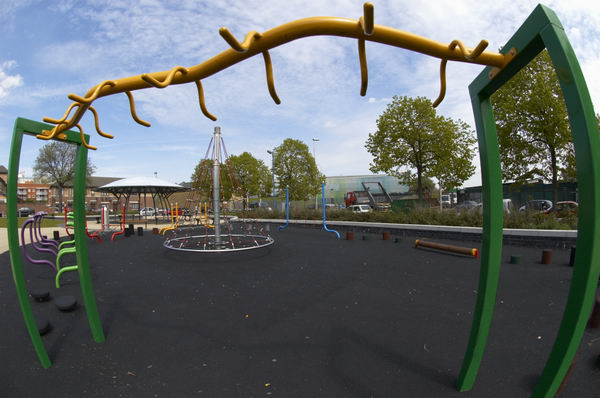 A new playground in Deptford, in the area being developed as a cultural quarter, near the Laban dance centre.