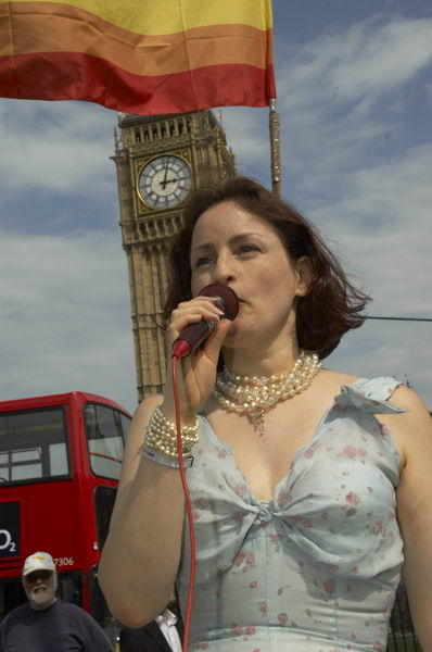 Parliamentary Peace candidates and Anarchist CricketersParliament Square, London, May 1, 2005![]() Darren spoke for the Green Party |
