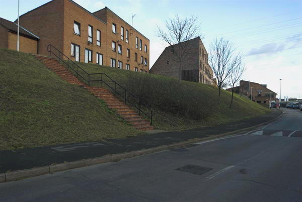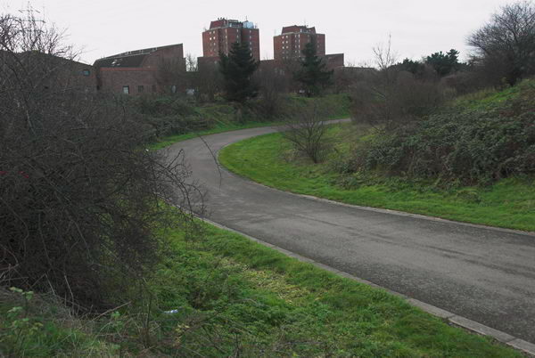 Clays Lane, with Park Village estate to the right, already cleared of residents and empty and unused although not required for 2 years. |