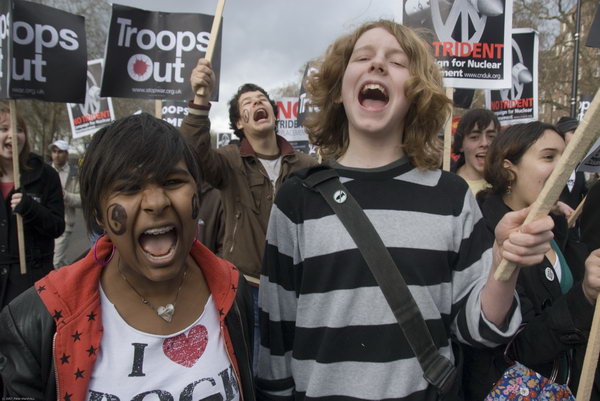 so saturday's march, organised by stop the war, the campaign for nuclear disarmament and the british muslim initiative against both of these had my whole-hearted support (although i would have photographed it anyway.) it is hard to be sure of numbers on events such as this, but the police estimate is laughable (the first figure they gave to the press, of 4000, was totally ludicrous.)