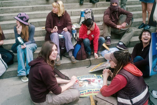mark thomas's latest twist to the mass lone demo was for demonstrators to set out a list of 20 demonstrations they would hold in the SOCPA area on saturday and to apply for permission for each of them. he was aiming for 2000 demonstrations (and hoping for an entry in the guinness book of records.) the police figure for the number of demonstrations that permission was applied for was 2,486, but it was actually quite hard to find many of them.