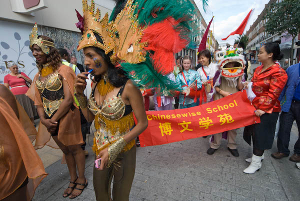 this year's kingston carnival was a much more exciting event than last year's but there was still a large rent-a-carnival aspect to it. kingston is an ethnically rich borough, and although there was plenty of home-grown talent on display, particularly in the performances by youth from the borough, the procession was still dominated by out of town talent. it's great to encourage diversity, but i think a borough carnival has a duty to promote its local expression rather more, even if it might mean - at least until it built up more - a rather less flashy display.
