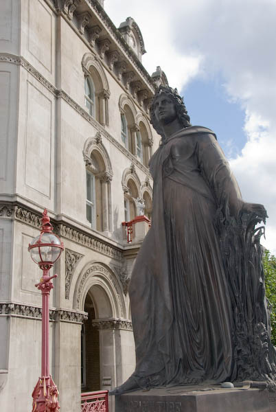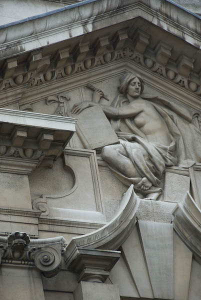 ![]() This woman holding a train is on Brittania House, offices of the London Dover & Chatham Railway in Old Bailey. |