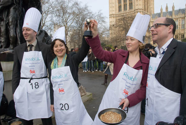 The Annual Parliamentary Pancake Race held in aid of Rehab UK is a serious challenge between teams representing the Labour, Conservative and Liberal Democrat Parties and a team of Parliamentary Reporters. I'm pleased to say that this year the reporters won.