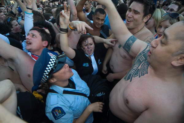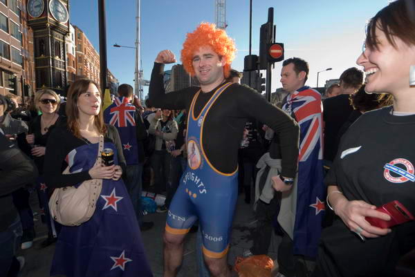 "Frivolity" was how one of the peace campaigners in Parliament Square referred to it, reminding me that if he was to be seen drinking alcohol there - as some 5000 or so Kiwis were openly doing - he would face immediate arrest. Frivilous I couldn't argue with, but they, we, were certainly having fun, and I don't have a problem with that, especially when it has the vaguely anarchic tinge of the Circle Line pub crawl, now established as an annual event to commemorate the Treaty of Waitangi. The treaty itself was and remains a doubtful and much-disputed document, and the day, Feb 6, which was made a public holiday in NZ only in 1974 has often been used as an occasion for protests by the Maori, although the haka performed in Parliament Square seemed more a celebration than a protest.