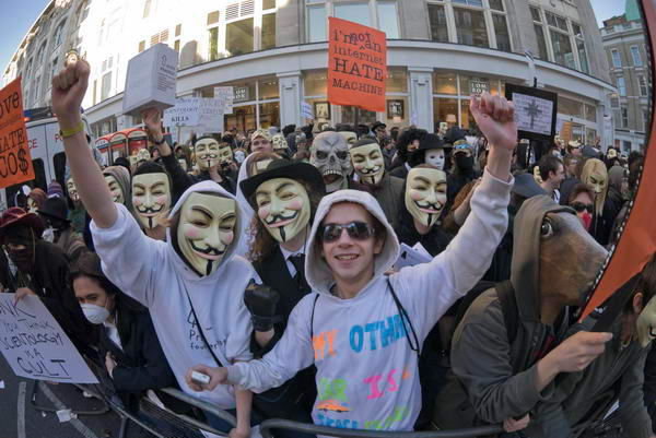 Those who publish material which questions or attacks the Church of Scientology have at times found themselves subject to personal attacks which you can read about on the web. Because of this, those behind Project Chanology call themselves 'Anonymous' and the London demonstration was one of over 50 protests in cities around the world in which those taking part hide their identity behind masks.