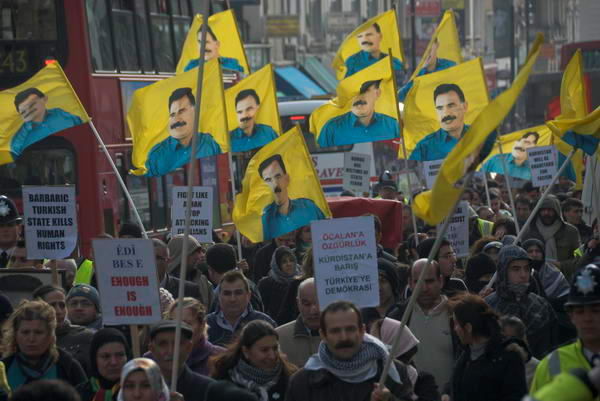 Around a thousand Kurds marched through north London on Friday with a large police escort to mark the 9th anniversary of the illegal rendition of their political leader, Abdullah Ocalan from Kenya on February 15, 1999. 0n his way from the Greek Embassy to Nairobi Airport he was captured in an operation invovling the CIA, the Turkish intelligence agency and possibly the Israeli intelligence agency Mossad, and flown back to Turkey.