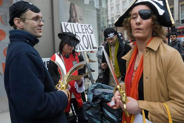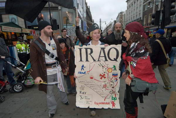 Hands off Iraqi Oil Piratical Action TourBond St-Shell Centre, London. Saturday 23 Feb, 2008