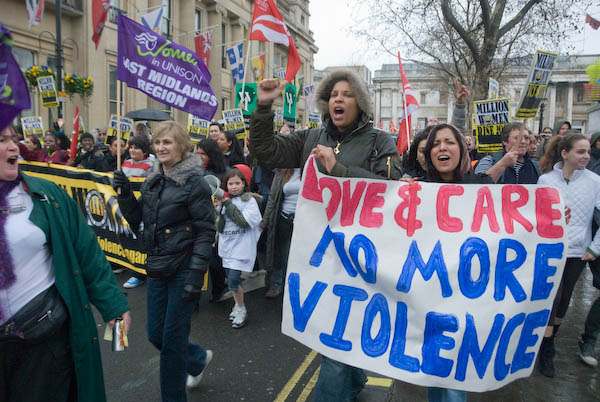 This all-woman march was aimed against all forms of male violence against women, and supported by women from a very wide range of groups, including trade unions and political organisations, rape support groups, feminist groups, sex workers, the women's international league for peace and freedom, the women's network of the international action network on small arms, Kurdish women and the women's institute.