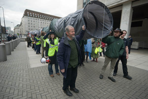 All-Irish environmental and social justice movement Gluaiseacht were in London for the weekend, and on St Patrick's Day itself gathered outside the Shell HQ at Waterloo, bringing with them a very large pipeline.