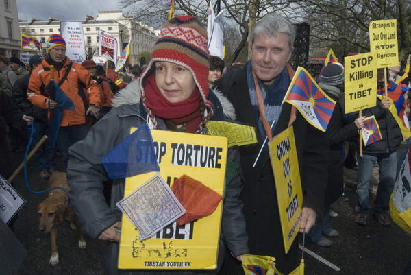 Around a thousand marched from the Chinese Embassy to a Whitehall rally to remember the Tibetan uprising 49 years ago and to demand that Gordon Brown meet the Dalai Lama and end British silence over Chinese human rights abuses in Tibet. The event started with a demonstration opposite the Chinese embassy in Portland Place, and a small deputation - including two men in a yak costume went across the road to attempt to deliver a message to the Chinese embassy.