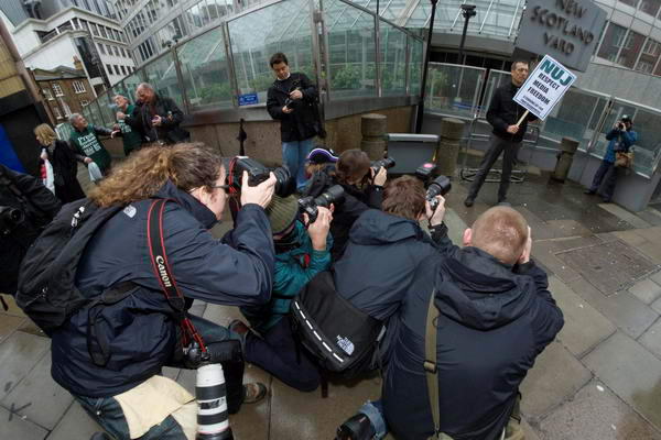 outside New Scotland Yard in support of photographers who want police to