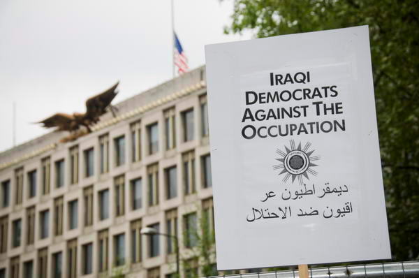 Approaching two hundred protesters, many from the Sudan, gathered opposite Downing Street for a noisy protest before marching to a rally held adjoining the Sudanese Embassy opposite St James's Palace in London.