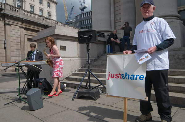 ![]() at Bank, in the centre of the financial powerhouse of the world, the CIty of London, organised by church-based group Justshare |