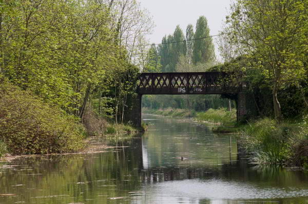 ![]() The canal runs very straignt for the first mile or two - the start of the canal is clearly visible under the bridge. |