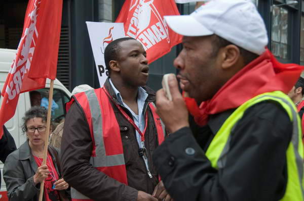 Justice for cleaners demonstrate at AON Devonshire Square, London. Thursday 15 May, 2008