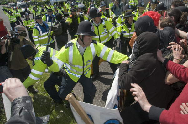 The police's most important duty is to protect people - including demonstrators. The car park outside the factory on Home Farm Rd was not a good place for police to pitch a battle, with a vertical drop of perhaps 50ft to the railway line below protected by only a low barrier to stop cars parking over the edge. Some individual officers clearly realised this, and I was politely given some entirely appropriate safety advice. Of course they also have a duty to protect property and the rights of individuals, including that of peaceful protest.