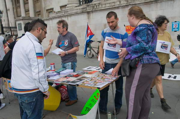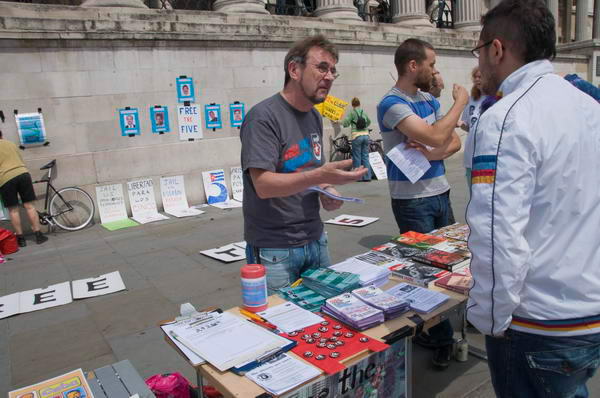 against the appeal judgements by protesting at the US Embassy in London