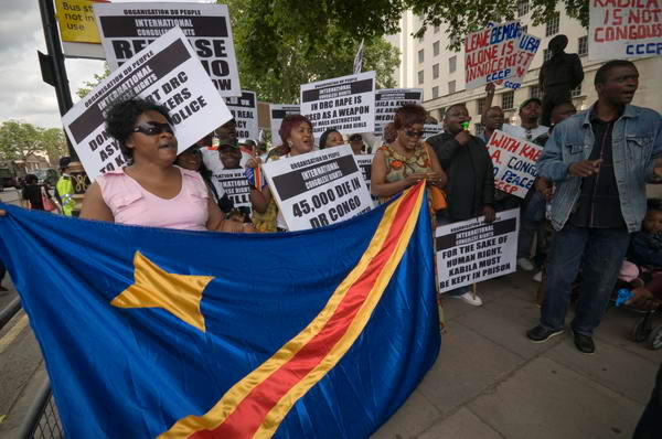 Demonstrators called for Britain, Europe and America to freeze the bank accounts of President Joseph Kabila and his cronies, and for Gordon Brown and the International Criminal Court to take action against the corrupt Kabila regime.