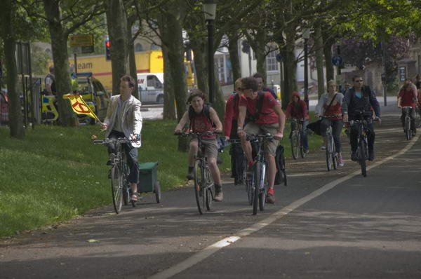 Those on foot are gathering not far away at The Level. I like the polite request 'Please Refrain from Bombing'