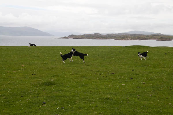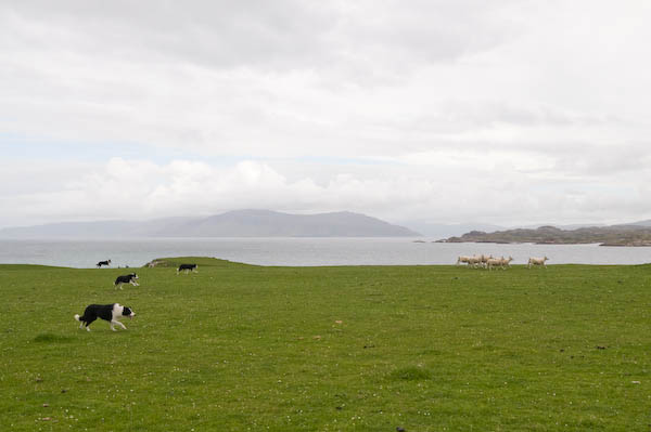 ![]() Dogs round up sheep at Ardionra at the north of Iona |