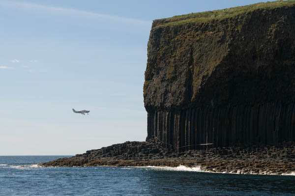 ![]() The giant basalt columns at the south of Staffa It looked as if this plane was about to fly into Fingal's cave - just around the corner |
