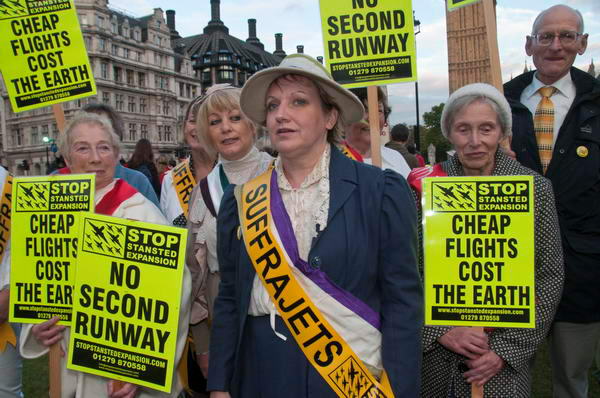 ![]() The campaigners against a second runway at Stansted wore 'Suffrajets' sashes |