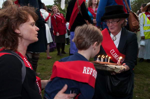 ![]() Some men also dressed the part Right: The buns say 'Deeds Not Words' and 'Climate Bill Now' and were rather sweet |