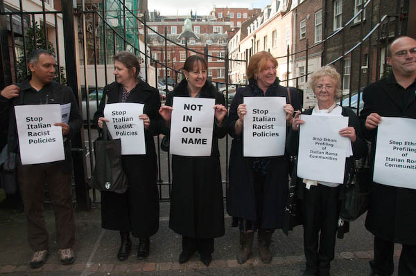 Roma Protest At Ethnic Cleansing in ItalyItalian Embassy, Three Kings Yard, London. Friday 17 Oct, 2008