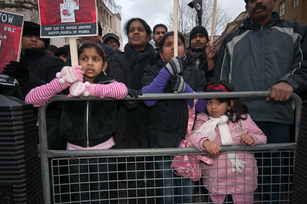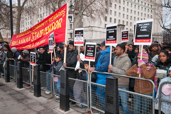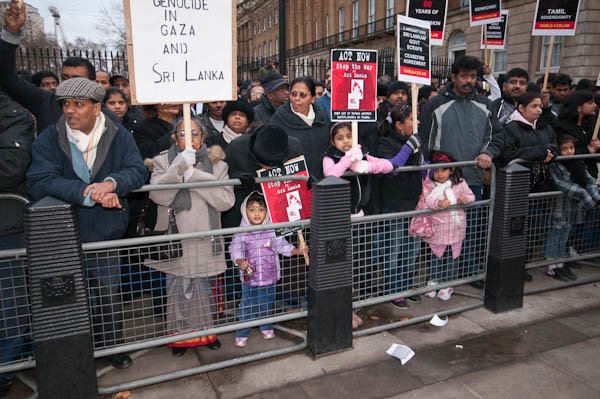 While the women and children from the Gaza demonstration were outside Downing St, the opposite side of the road was crowded with Tamils.