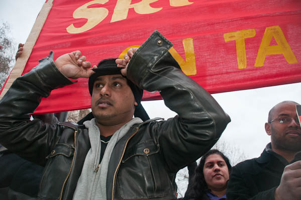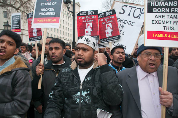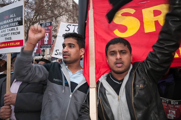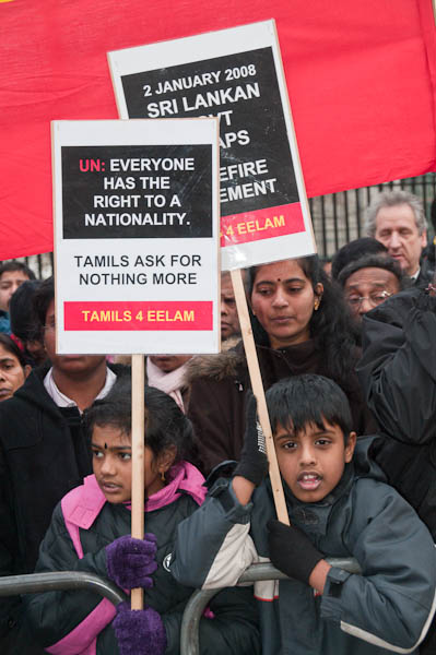 Demonstrating against Sri Lankan attacks on Tamil civilians and for an independent Tamil state, Tamil Eelam.