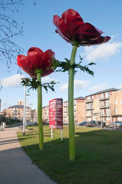 ![]() The giant flowers are in a small park at the eastern end of Roman Road , Lefevre Park, opened in 2007 |