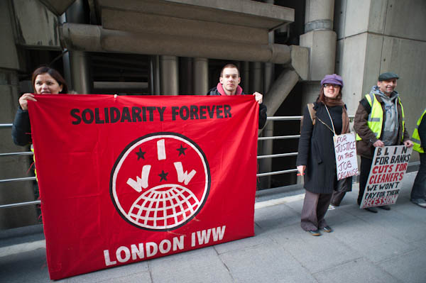 Solidarity Forever - the banner of London IWW (Industrial Workers of the World) established in 2005 at the time of the centenary of the international IWW movement.