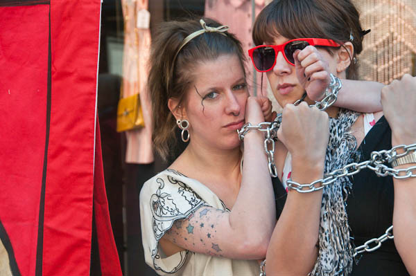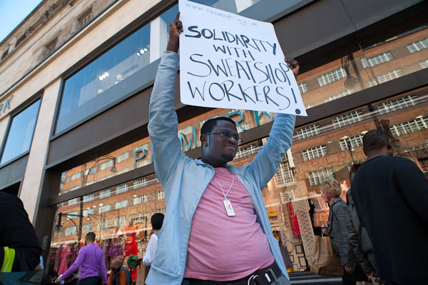 As the models paraded, shoppers were told of workers in Bangladesh being paid 7p an hour and working 80 hour weeks