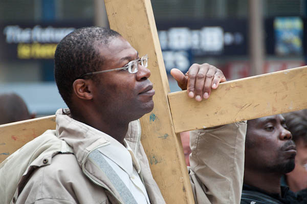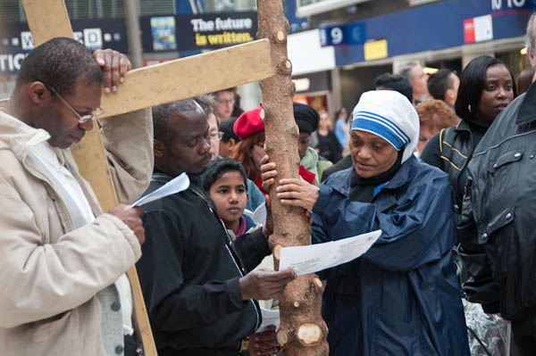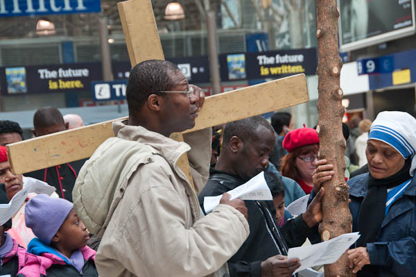 There are two crosses as processions come to the station along two routes in North Lambeth