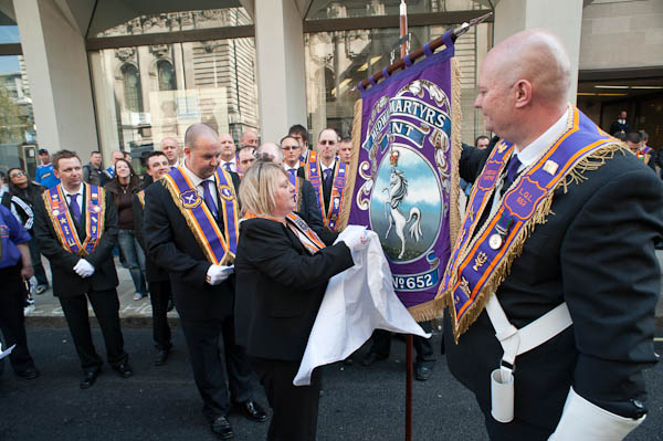 A new banner for the Medway Martyrs was dedicated in a short service before the march began