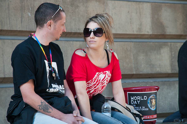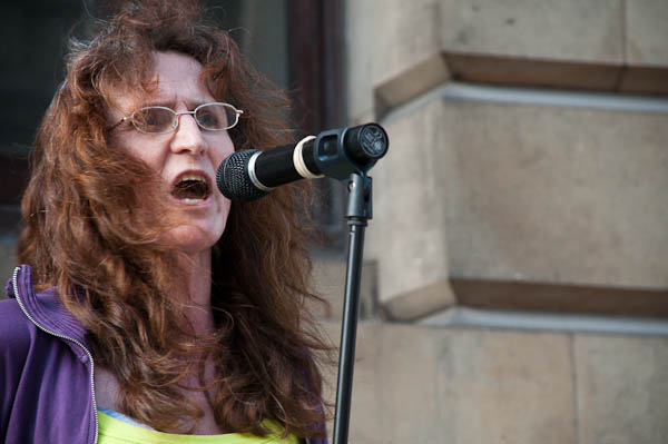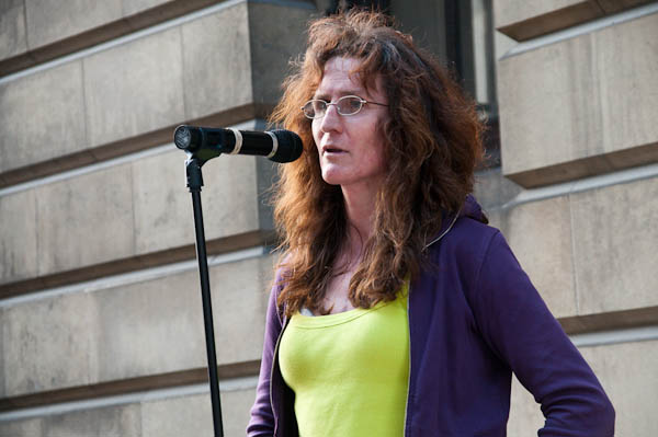 ![]() Debbie from SHAC spoke forcefully about the campaign to shut down HLS for their mistreatment of animals |